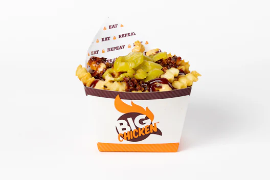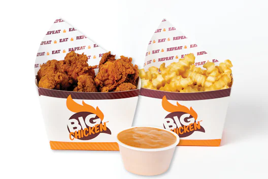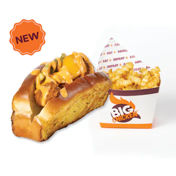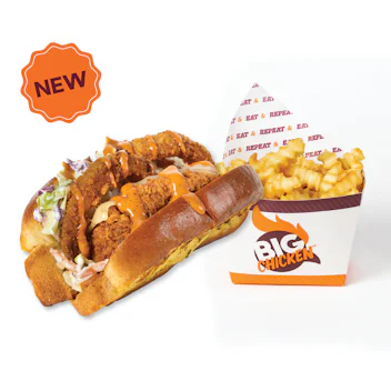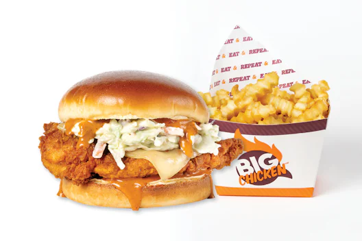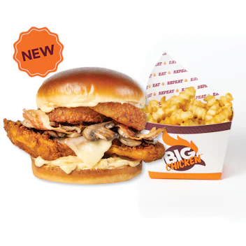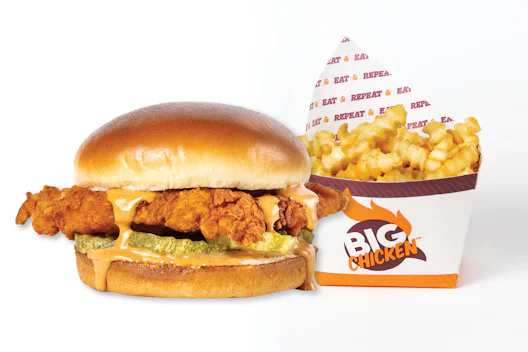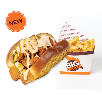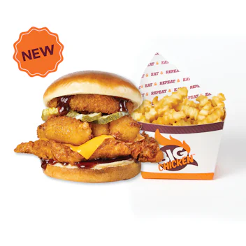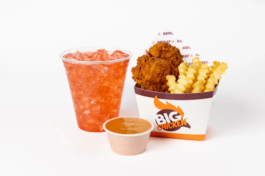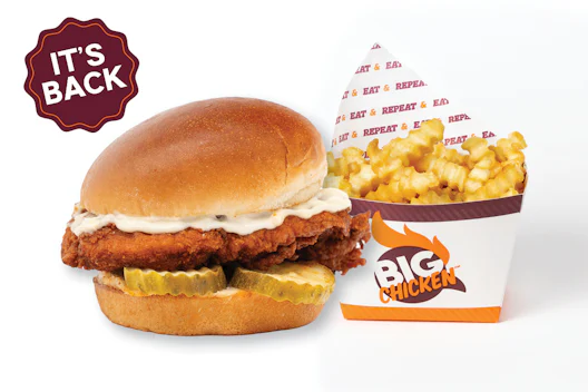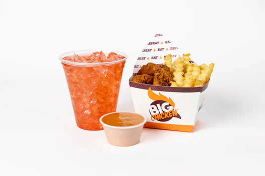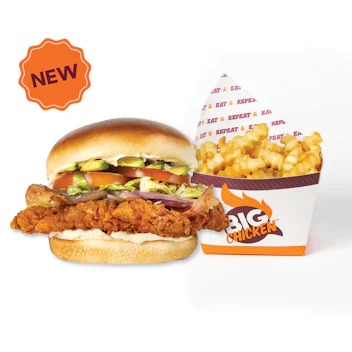 Big Chicken Sauce and Pickles. Served with fries, NO drink