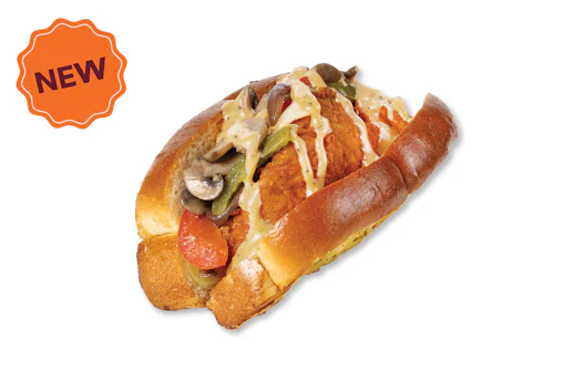 White American Cheese, Mushrooms, Peppers, Caramelized Onions, Honey Mustard