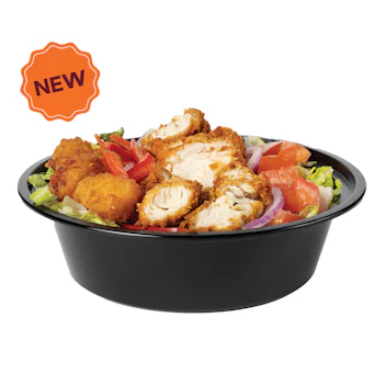 Romaine, Tomatoes, Red Onions, Bell Peppers, Two Chicken Tenders, Cheese Curds