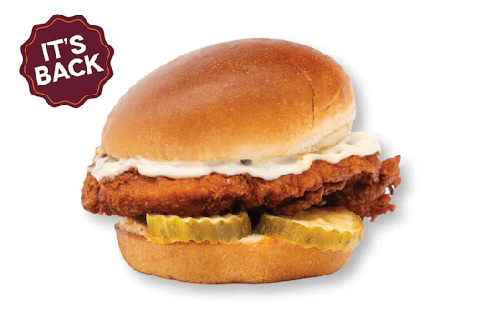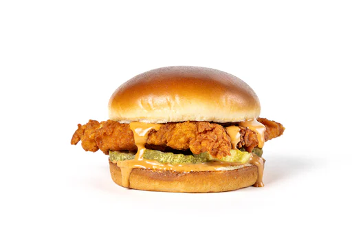 Crispy Chicken dunked in Nashville Hot Oil, mayo & pickles.