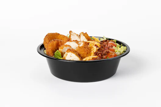 Romaine, Tomatoes, Bacon, Two Chicken Tenders, Crispy Fried Onions, Mixed Cheese